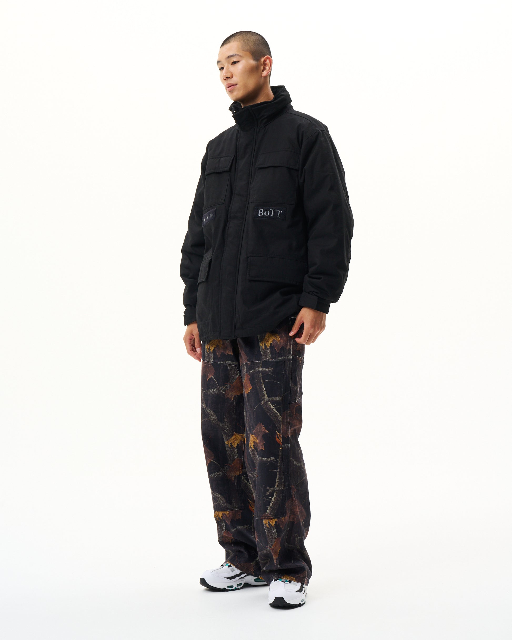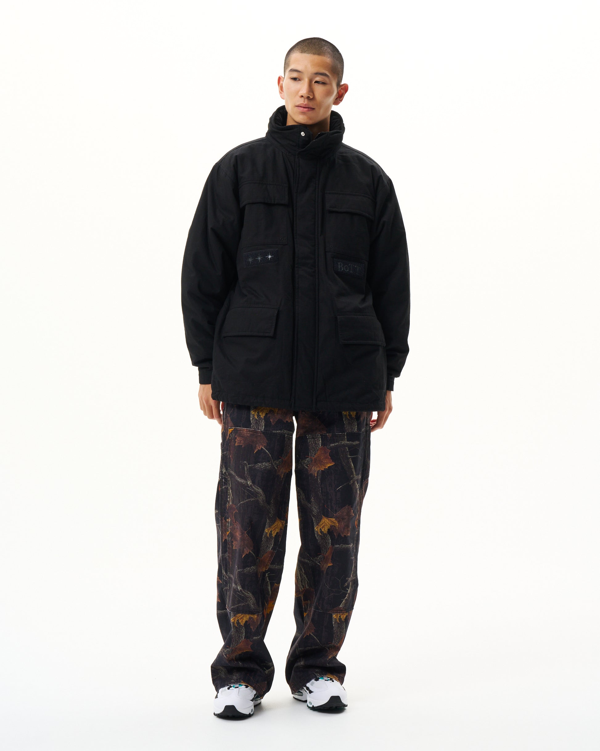 YUKI is 161cm wearing Night Camo size Medium.